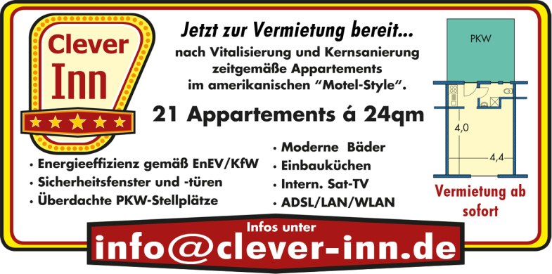 21 "Reihenhaus" - Appartements á 24 qm im amerikanischen Motel-Style, gemäß EnEV/KfW 2013 vitalisiert und saniert, konzipert als attraktive Wohnanlage mit folgenden Ausstattungen: